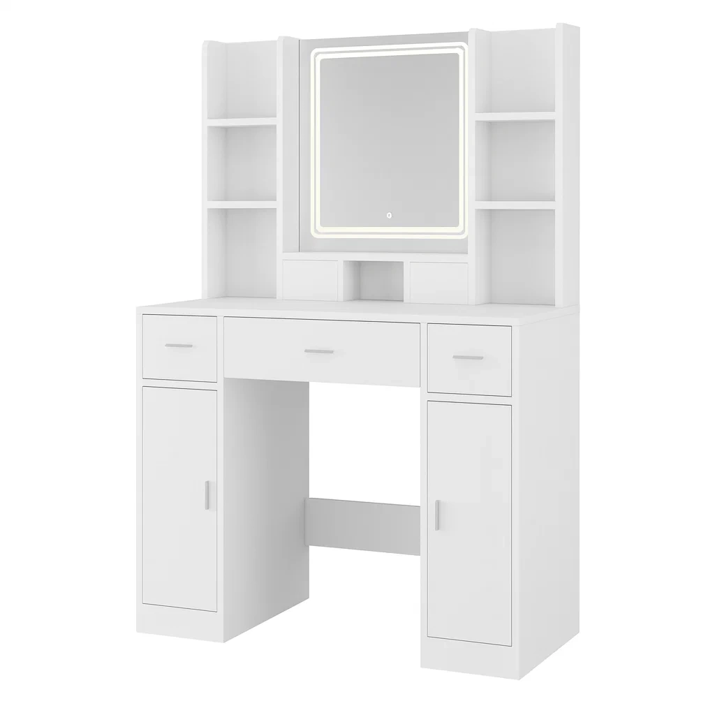 3 cassetti, 4 ripiani, Specchio con illuminazione LED